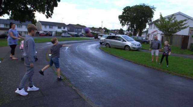 贫穷限制了一家的想象力,这家人的家庭娱乐项目,也仅仅是隔着马路玩球。