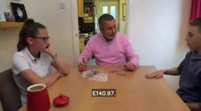 这还仅是开始, 更暴击的一幕发生在 两个家庭领各自的生活开支。 穷爸爸简直做梦都要笑醒,一周3000镑,要知道上周他们交了水电费,还仅剩一块8毛钱,这实在超出了他们的想象力。