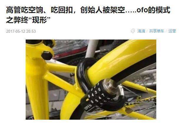 跟软银谈融资,不知道谁放出了高管贪腐的消息,结果投资黄了。接下来,我们仔细回忆下ofo最近上新闻的都是哪些词:资金链要断了、欠下供应商巨款、挪用押金。