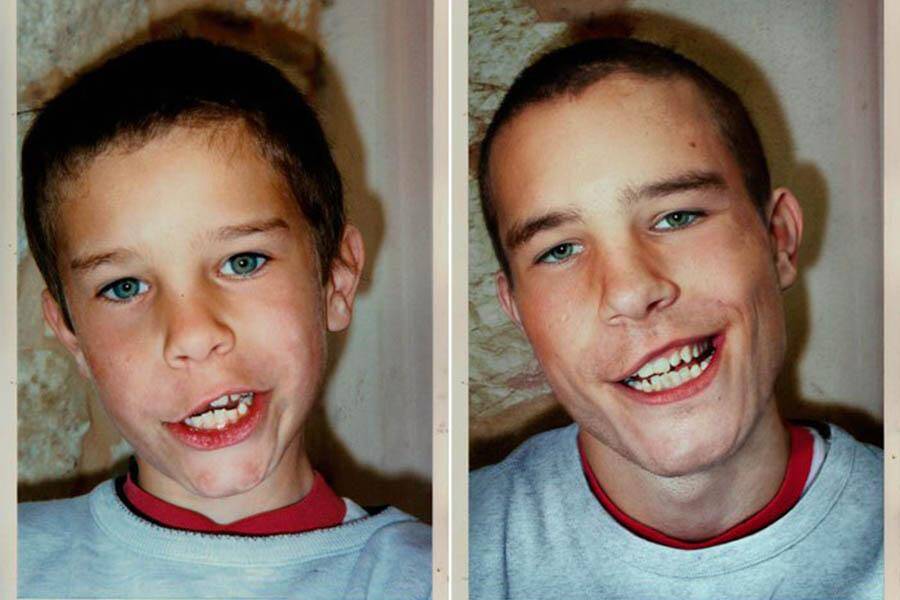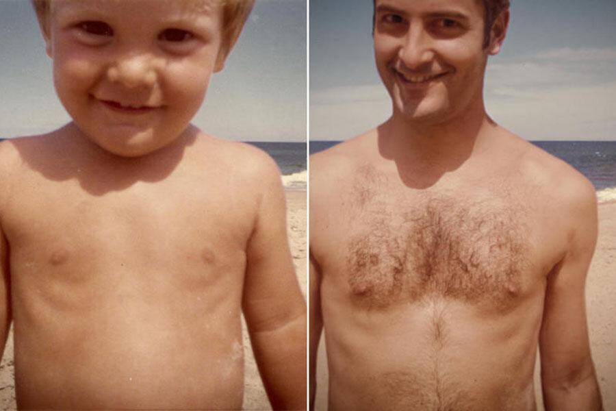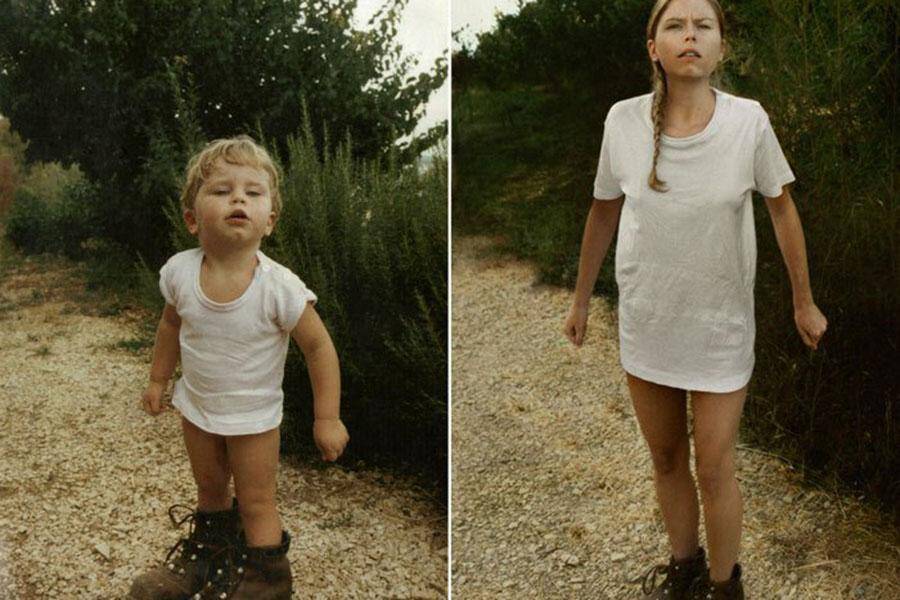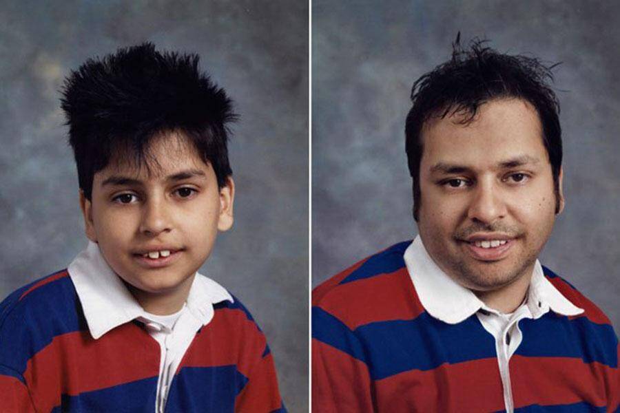 所有的模特都被要求穿上与童年时相同的服装,在相同的场景下拍摄,在横跨数十年的照片中竟然连光线仿佛都完全一样。图为Damian 1989和2010对比照。