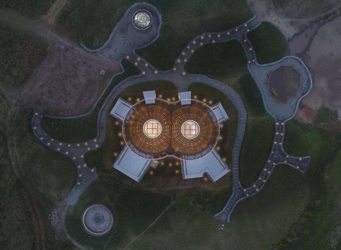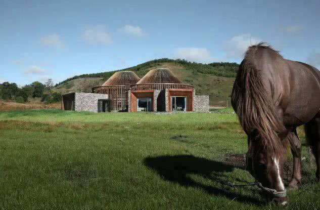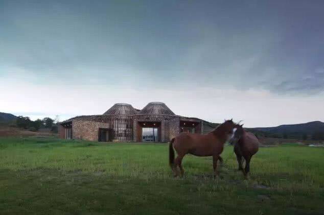 建筑的基地,位于起伏的丘陵之间,几百亩的草原上都是空旷一片,如何使建筑不违和地融入场所中,是设计团队要面临的一大问题。