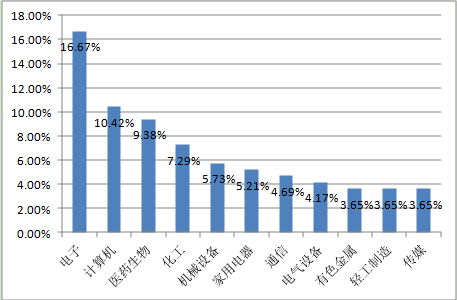 经机会宝统计,在2017年机会宝组织调研(或独家调研)并在今年股价上涨的上市公司中,电子行业上市公司数量最多,占比16.67%。计算机、医药生物位列其后。